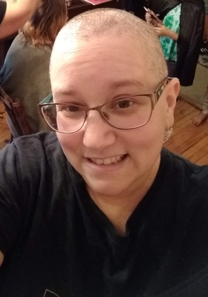 I started to lose my hair and I looked horrible. I asked my brother-in-law, Nate, to come over and shave my head. I can’t imagine it was easy for him, but he did it for me. Being bald was way easier than waiting for all the hair to fall out.
