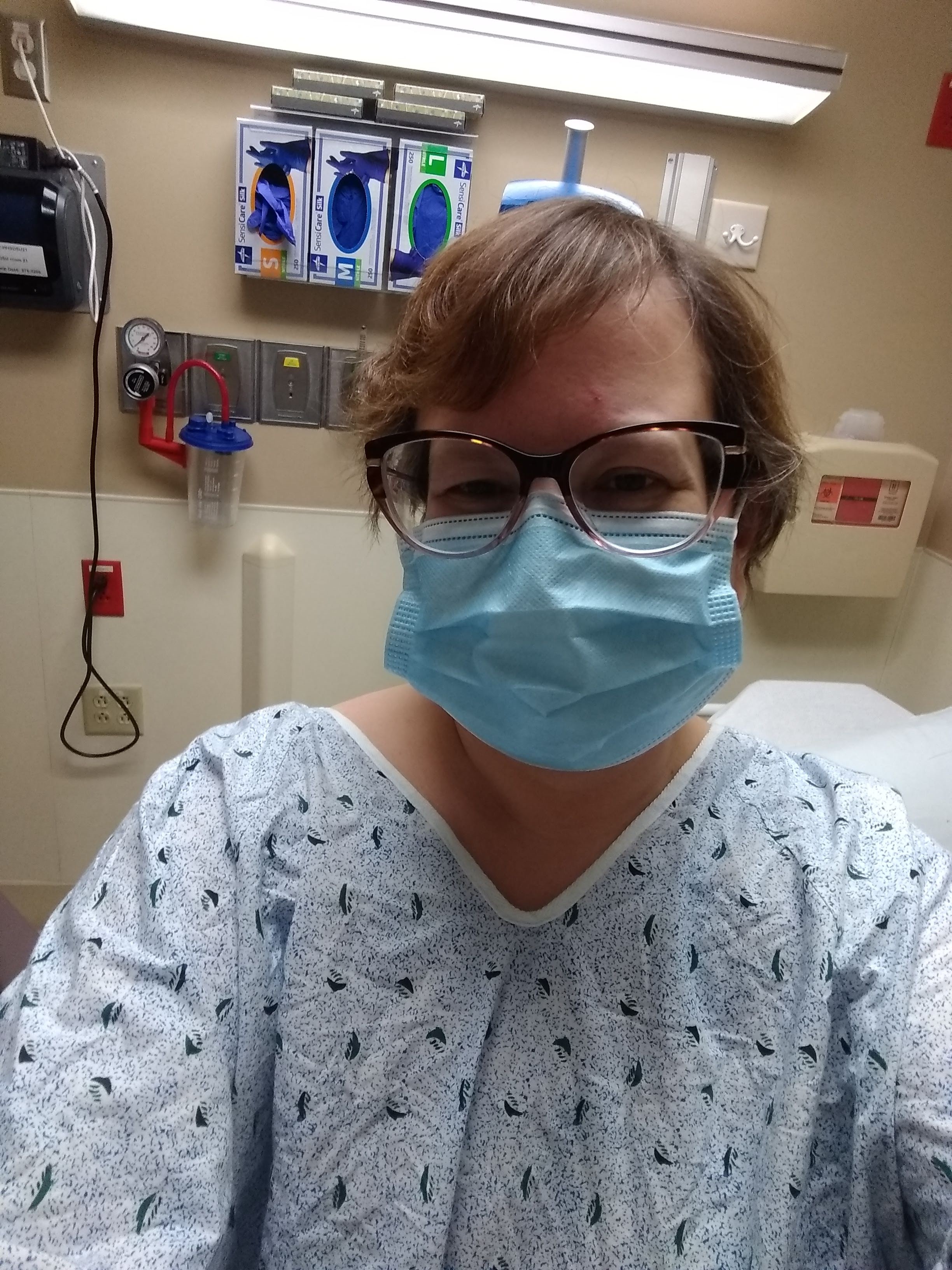 My first radiation treatment. This was right before the full Covid shutdown. It was weird to drive to radiation therapy and not see any other cars on the road. Wearing a mask while there was also strange.